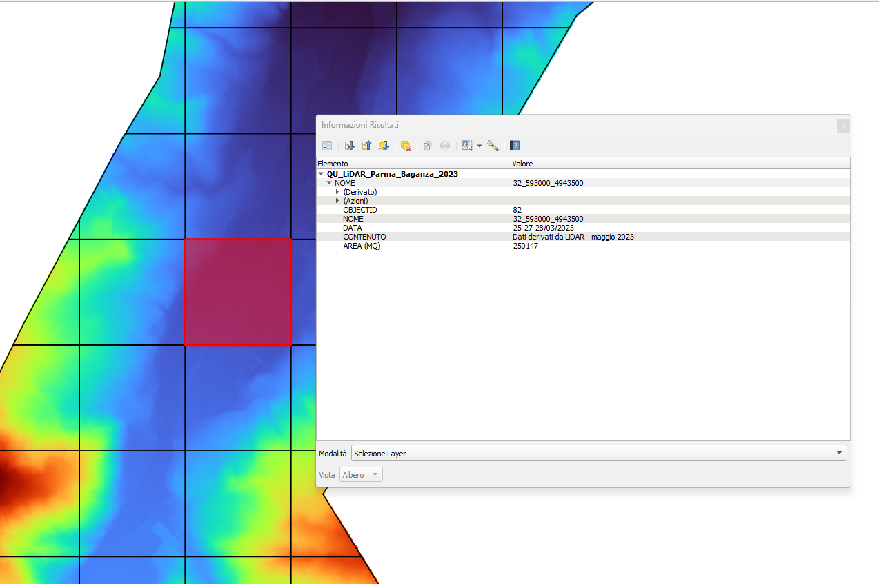 Quadro di unione Comune di Bologna 2023 - Prodotti LiDAR