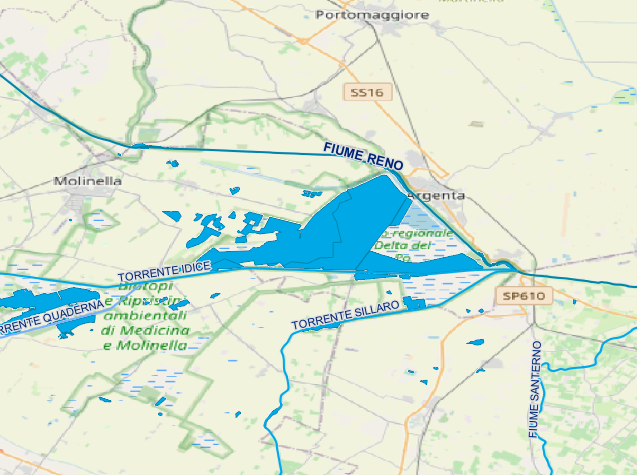 | Fonte | Data base vettoriale, poligonale, relativo alla perimetrazione dei territori allagati durante gli eventi di rotta avvenuti tra il 19 e il 20 Ottobre 2024 in Regione Emilia-Romagna. Fotointerpretazione da diverse sorgenti dati. Le riprese aeree sono state in parte finanziate dal JRC nell'ambito del progetto Copernicus Emergency Management (Attivazione EMSR771)., La versione 7 è adottata con il Decreto n. 88 del 24/11/2025 del Segretario Generale dell'Autorità di Bacino distrettuale del fiume Po con le Misure di salvaguardia per le aree coinvolte da eventi di dissesto idraulico ed idrogeologico del maggio 2023 e individuate nel Piano Speciale Preliminare del Commissario Straordinario alla Ricostruzione, abrogate ai sensi dell'art. 5 della Deliberazione CIP 13/2025. | |